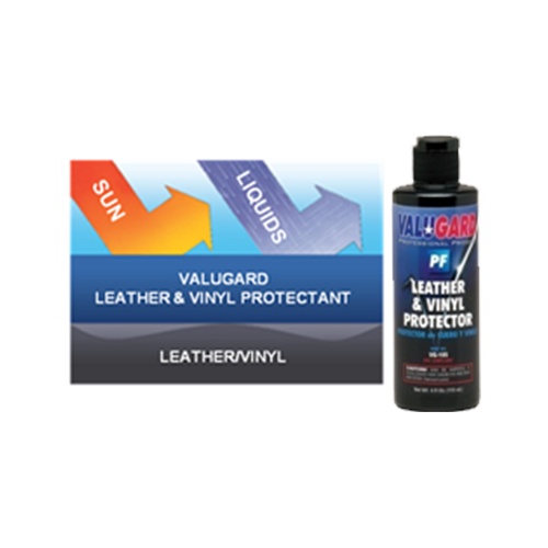 A true coating, not just a dressing, ValuGard Leather/Vinyl Protector is an acrylic latex emulsion with an ultra violet barrier added to help prevent fading of leather and vinyl upholstery. Unlike silicone dressings, ValuGard Leather/Vinyl Protector is not slippery and does not attract dry soil.